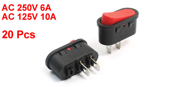 Total Size(Each One) 28 x 12 x 26mm/ 1.1" x 0.47" x 1"(L*W*T) Mounting Size 26 x 10.5mm/ 1" x 0.41"(L*W) Color Black, Red Material Plastic, Metal Total Weight 66g Package Content 20 x Rocker Switch - Reviews