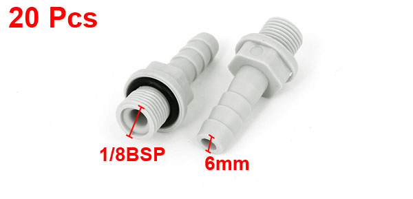 20pcs 6mm Pipe Inner D x 1/8BSP Male Thread Fuel Gas Water Hose Barb Coupler