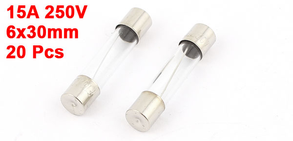 20pcs 6x30mm 15A 250V Quick Blow Fast Acting Cylindrical Glass Tube Fuse