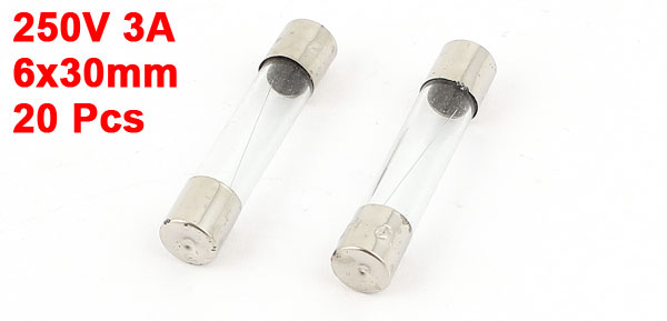 Product Name Quick Blow Glass Tube Fuses Features Fast Blow(F) Low Breaking Capacity(L) Rated Current 250V Rated Current 3A Body Size 6 x 30mm/ 0.24" x 1.2"(D*L) Material Glass, Metal Color Silver Tone, Clear Weight 22g Package 20 x Quick Blow Glass Tube Fuses - Reviews