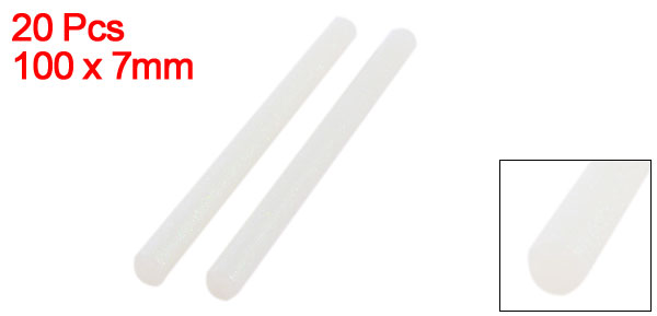 Product Name Hot Melt Glue Sticks Material Hot Melt Glue Total Size 100 x 7mm / 4" x 0.28"(L*D) Color White Net Weight 79g Package Content 20 Pcs x Hot Melt Glue Sticks - Reviews