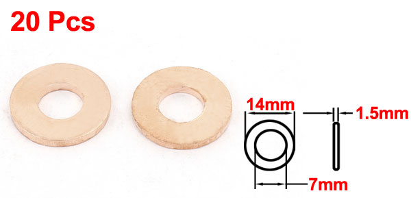 20pcs 7mmx14mmx1.5mm Copper Flat Washer Ring Oil Brake Line Seal Fitting Gaskets