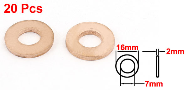 20Pcs 7mmx16mmx2mm Copper Crush Washer Flat Ring Seal Gasket Fitting