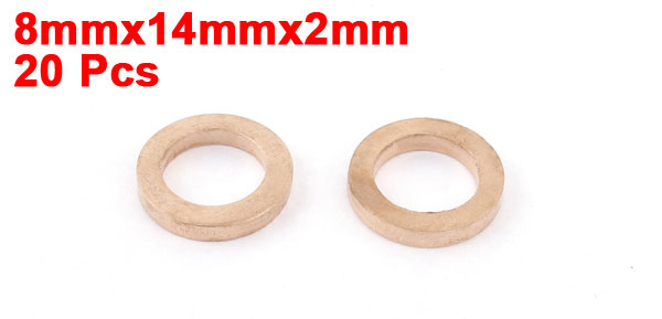 Product Name Copper Washer Total Size 8 x 14 x 2mm/0.3" x 0.55" x 0.08"(Inner Dia*OD*T) Material Copper Color Copper Tone Net Weight 33g Package Content 20 x Copper Washers - Reviews