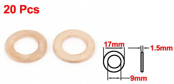 20pcs 9mmx17mmx1.5mm Copper Flat Washer Ring Oil Brake Line Seal Gaskets