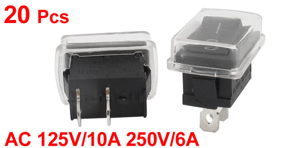 Details20PCS AC 125V/10A 250V/6A SPST ON/OFF 2 Pins Waterproof Rocker Switch  Main Color Black Product Name Waterproof Rocker Switch Brand DMiotech Net Weight 97g Total Size(Each) 26 x 25 x 18mm/ 1" x 1" x 0.7"(L*W*H) Positions Number 2 Country of Manufacture CHINA Model SM601 Package Content 20 x Waterproof Rocker Switches Voltage/Current AC 125V/10A 250V/6A Connection Type SPST Material Plastic, Metal