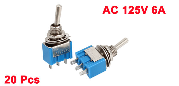 Product Name Toggle Switch Color Blue & Silver Tone Power AC 125V 6A Position 2 Position(ON/ON) Pins 3 Type SPDT(Latching) Total Size 13 x 8 x 33mm/0.51" x 0.31" x 1.3"(L*W*H) Mounting Thread 5.8mm/0.23" Weight 94g Package Content 20Pcs x Toggle Switch - Reviews