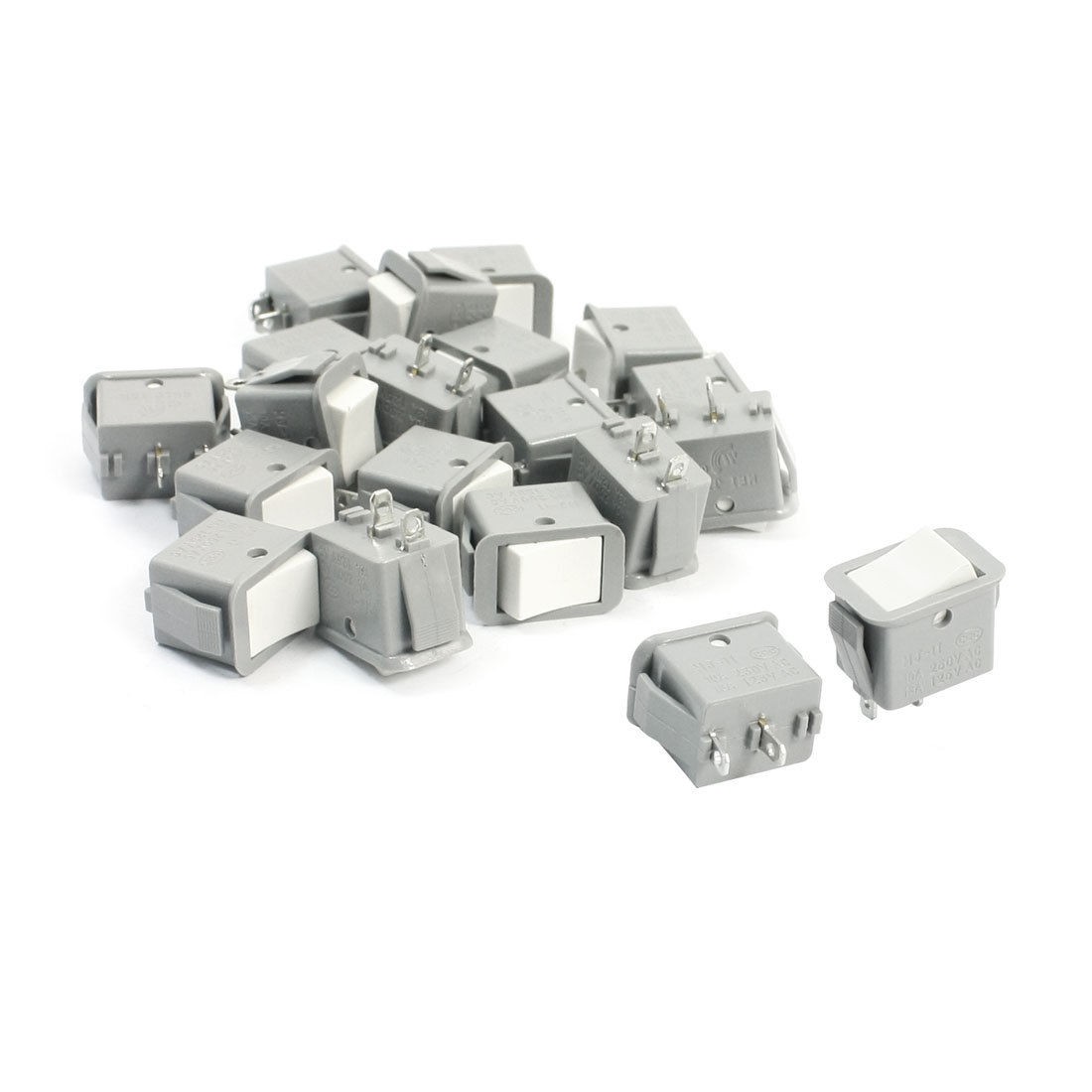 20Pcs AC250V/10A 125V/13A 2 Pins Latching SPST On/Off Rocker Switch Gray