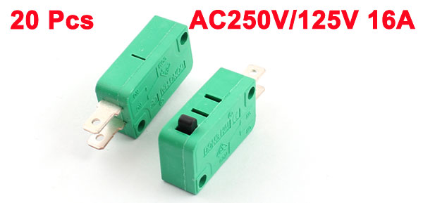 Main Color Green,Silver Tone Product Name Micro limit Switch Brand DMiotech Net Weight 131g Country of Manufacture CHINA Model KW3-OZ Package Content 20Pcs x Micro Switch Rating AC250V/125V 16A Material Plastic, Metal Pins Quantity 2 Body Size 28 x 10 x 16mm/1.1" x 0.39" x 0.63"(L*W*H) - Reviews