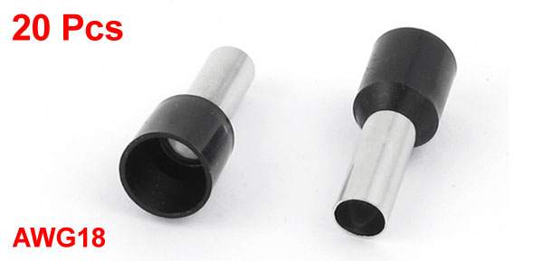 20pcs AWG18 Wire Copper Crimp Connector Insulated Ferrule Cord Terminal Black