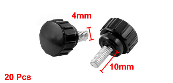20pcs Black 5mm Thread Diameter 20mm Length Knurled Grip Knobs