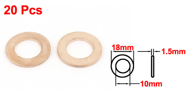 20Pcs Copper Crush Washer Flat Ring Fitting 10mmx18mmx1.5mm