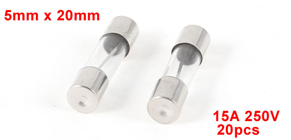 20pcs Fast Blow Glass Tube Fuse 15A 250V 5mm x 20mm