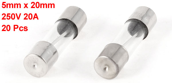 Product Name Glass Tube Fuses Features Fast Blow(F), Low Breaking Capacity(L) Rated Voltage 250V Rated Current 20A Specification 5mm x 20mm Diameter 5mm / 0.197" Length 20mm / 0.787" Material Glass, Metal Color Clear Weight 14g Package 20 x Glass Tube Fuses - Reviews