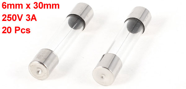 Product Name Glass Tube Fuses Features Fast Blow(F), Low Breaking Capacity(L) Rated Voltage 250V Rated Current 3A Specification 6mm x 30mm Diameter 6mm / 0.236" Length 30mm / 1.181" Material Glass, Metal Color Clear Weight 22g Package 20 x Glass Tube Fuses - Reviews