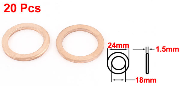 20pcs Flat Ring Copper Washer Gasket 18mmx24mmx1.5mm