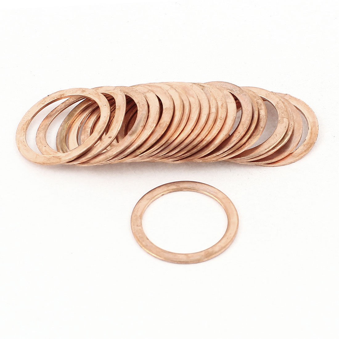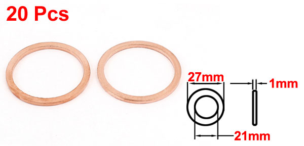 Details20pcs Flat Ring Copper Washer Gasket 21mmx27mmx1mm  Product Name Copper Washer Size 21 x 27 x 1mm / 0.83" x 1.06" x 0.04"(Inner Dia * OD * T) Material Copper Color Copper Tone Weight 34g Package Content 20 x Copper Washer