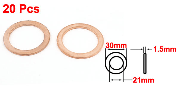 20pcs Flat Ring Copper Washer Gasket 21mmx30mmx1.5mm
