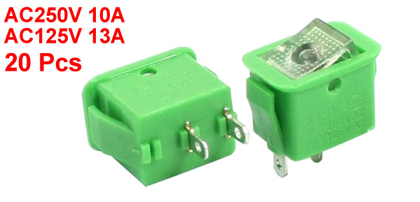 20pcs Green Latching SPST 2 Positions Rocker Switch AC250V/10A 125V/13A