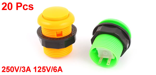 20pcs Green/Yellow NO Type SPST Pushbutton Switch for Arcade Game Machine