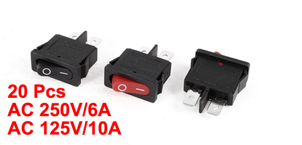 Item Name Rocker Switch Model KCD1 Type SPST Position On/Off(I/O) Voltage & Current AC 250V/6A, AC 125V/10A Overall Size 2.2 x 0.9 x 2.5cm/ 0.87" x 0.35" x 1"(L*W*H) Body Color Black Material Plastic, Metal Net Weight 49g Package Content 20 x Rocker Switches - Reviews
