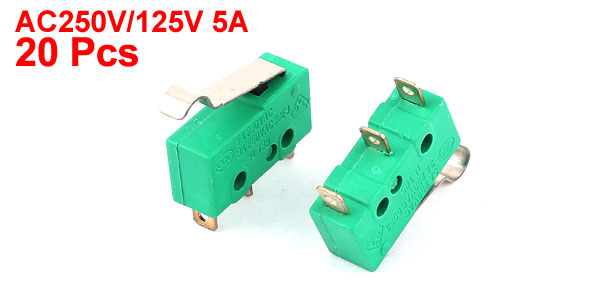Details20pcs KW4-3Z-3 SPDT AC250V/125V 5A R Lever Self-reset Micro Limit Switch  Main Color Green,Silver Tone,Black Product Name Micro limit Switch Lever Length 20mm/0.79" Brand DMiotech Net Weight 45g Country of Manufacture CHINA Model KW4-3Z-3 Package Content 20 x Micro Limit Switch Brand Assisi Rating AC250V/125V 5A Material Plastic, Metal Body Size 20 x 6 x 10mm/0.79" x 0.24" x 0.39"(L*W*H)