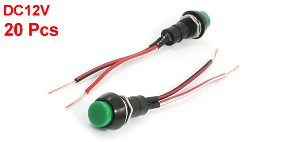 Details20Pcs Latching SPST DC12V 2-Wires Round Rocker Switches for Motorcycle  Product Name Rocker Switch Action Type Latching Contact Type SPST Rating Voltage DC12V Body Size(Each) 18 x 34mm/ 0.75" x 1.3"(D*H) Mounting Hole Diameter 12mm / 0.47" Cable Length(Each) 10cm / 3.9" Button Color Green Body Color Black Material Plastic, Metal Weight 132g Package Content 20 x Rocker Switches