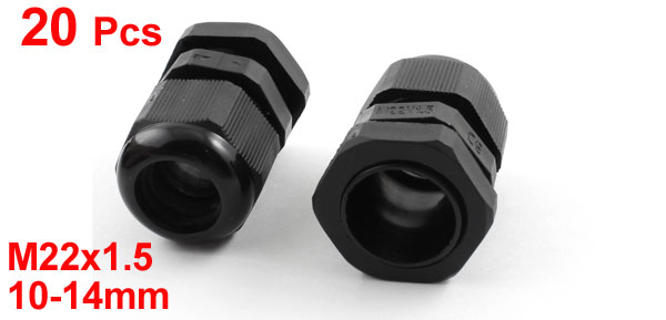 20Pcs M22 22mm Thread Waterproof Connector Gland Black for 10-14mm Cable