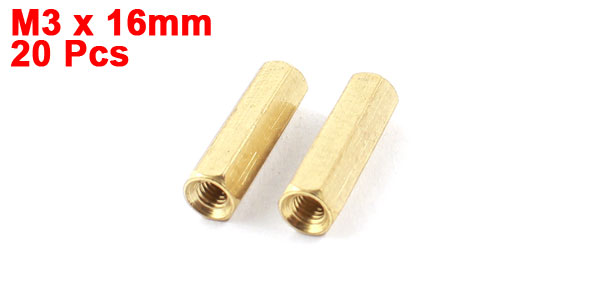 20Pcs M3 x 16mm Female Thread Gold Tone Brass Standoff Hexagonal Spacer