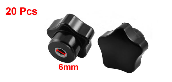 20pcs M6 6mm Female Thread Dia Screw On Type Star Knob Black