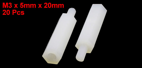 Product Name Hexagonal Threaded Spacer Thread Size M3 Total Size 20 x 5mm / 0.78" x 0.2" (H*D) Material Nylon Color White Net Weight 6g Package Content 20Pcs x Hexagonal Threaded Spacer - Reviews