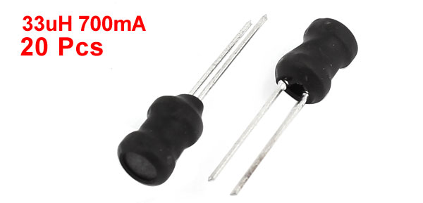 Product Name Inductor Inductance 33uH Rating Current 700mA Tolerance 10% Body Size 5 x 7mm / 0.2" x 0.28"(D*H) Pin Size 0.5 x 15mm/ 0.02" x 0.59"(D*L) Lead Distance 2mm / 0.08" Color Black, Silver Tone Weight 13g Package Content 20Pcs x Inductors - Reviews