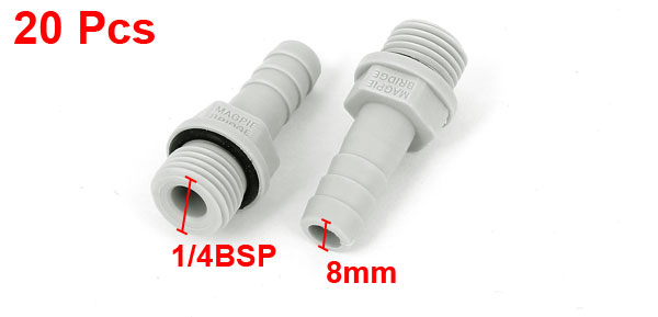 20pcs Pipe Fitting Coupler Adapter 1/4BSP Thread x 8mm Hose Barb Fuel Gas Water