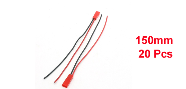 Product Name RC Connector Wire Wire Type 22AWG Connector Type 2Pin JST Female Connector Cable Length 150mm / 5.9" Connector Size 19 x 6 x 4mm / 0.75" x 0.24" x 0.16"(L*W*H) Material Metal, Plastic External Color Red, Black Weight 39g Package 20 x RC Connector Wire - Reviews