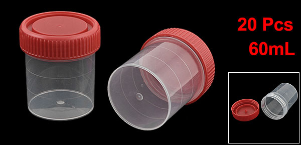 20pcs Red Clear Plastic Round Shape Urine Test Cups Holder 60mL w Cover