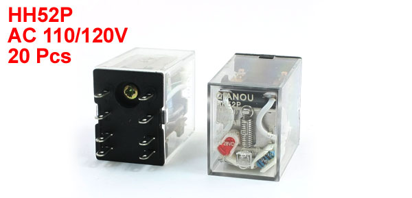 20pcs Red LED Indicator Light AC 110/120V Power Relay DPDT 2NO 2NC HH52P