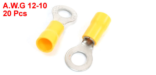 20Pcs RV5.5-6 Insulated Ring Terminal Cable Lug AWG 12-10 Wire Yellow