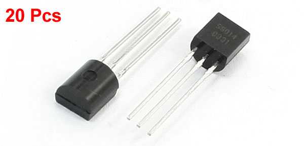 Details20pcs S9014 NPN A1015 PNP TO-92 Package 3 Pin Through Hole Transistor  Product Name Transistor Mounted Type Through Hole Model S9014 Type NPN Collector Base Voltage 50V Collector Current(Continuous) 0.1A Collector Power Max Dissipation 0.4W Max Transition Frequency 150MHz Model A1015 Type PNP Collector Base Voltage 60V Collector Current(Continuous) 0.1A Collector Power Max Dissipation 400mW Max Transition Frequency 8MHz Pin Size 14 x 1mm/ 0.55" x 0.04" ( L* Pitch) Body Dimension 4.6 x 4.3 x 3.3mm/ 0.18" x 0.17" x 0.13" (L*W*T) Main Color Black Weight 4g Package Content 10 x S9014 NPN Transistors 10 x A1015 PNP Transistors
