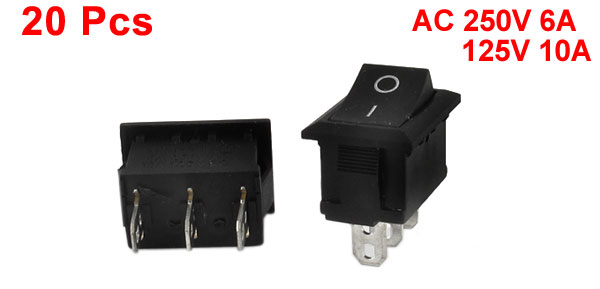 Details20Pcs SPDT 3 Pin Terminal Soldering Boat Rocker Switches AC 250V 6A 125V 10A  Main Color Black Overall Size 24 x 21 x 15mm / 0.95" x 0.84" x 0.6" (L*W*T) Brand DMiotech Country of Manufacture CHINA Terminals 3 Pins Model KCD1-101 Material Plastic, Metal Poles SPDT Product Name Rocker Switch Net Weight 67g Rated Voltage AC 250V 6A AC 125V 10A Package Content 20 Pcs x Rocker Switches Position 2