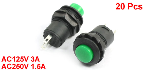 20Pcs SPST 2Pins Green Locking Pushbutton Switch AC125V 3A AC250V 1.5A