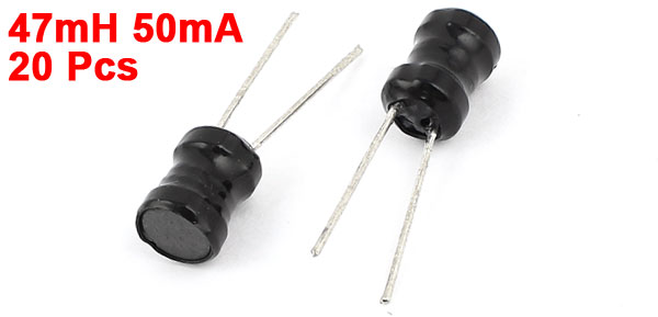 Product Name Inductor Inductance 47mH Rating Current 50mA Tolerance 10% Body Size 6 x 8mm / 0.24" x 0.31"(D*H) Pin Size 0.5 x 14mm/ 0.02" x 0.55"(D*L) Lead Distance 2.5mm / 0.1" Color Black, Silver Tone Weight 22g Package Content 20Pcs x Inductors  - Reviews