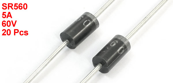 Product Name Schottky Diode Model SR560 Forward Current 5A Reverse Voltage 60V Lead Size(Each Side) 1 x 25mm/0.04" x 1"(D*L) Body Size 5 x 9mm/0.2" x 0.35"(D*L) Color Black Weight 20g Package Content 20Pcs x Schottky Diodes - Reviews
