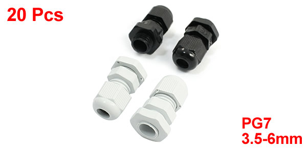 20Pcs Waterproof Adjustable PG7 3.5-6mm Cables Gland Joints Black White