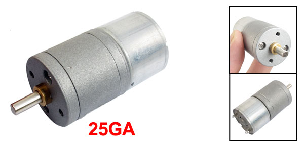 Product Name DC Geared Motor Model Type 25GA Rated Voltage DC 3V Current 0.45A Speed 20RPM Shaft Size 4 x 12mm/ 0.16" x 0.5"(D*H) Body Size 25 x 44mm / 0.9"x 1.7"(Max.D*H) Total Length 56mm / 2.2" Main Color Silver Tone Main Material Metal Weight 72g Package 1 x DC Geared Motor - Reviews