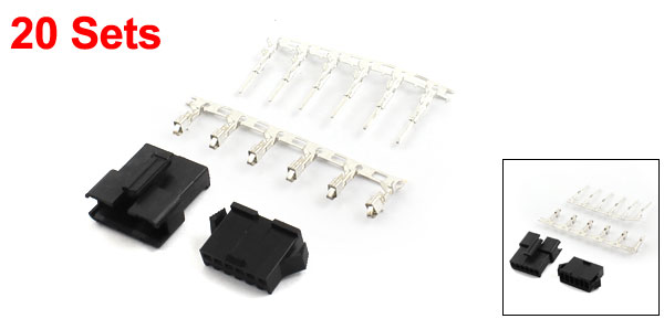 20Sets 2.5mm Pitch Black Plastic 6P JST-SM Plug Housing Terminal Connector