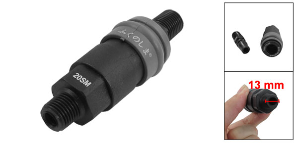 Product Name Quick Coupler Type 20SM + 20PM Male Thread Diameter 13mm Male Thread Size 1/4"PT Fluid Applied Air Temperature -35-50C Barometric Pressure(Max) 15kgf/cm2 Overall Size 88 x 29mm/ 3.5" x 1.1" (L*max.D) Color Black, Gray Material Plastic Weight 33g Package 1 x Quick Coupler - Reviews