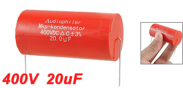 Product Name Tubular Audio Capacitor Type Aluminum Electrolytic Capacitor Capacitance 20uF Tolerance ±3% Rated Voltage 400V DC Lead Size 30 x 0.6mm/1.2'' x 0.02''(L*D) Body Size 57 x 27mm/2.2'' x 1.1'' (L*D) Color Red Weight 32g Package Content 1 x Tubular Audio Capacitor - Reviews