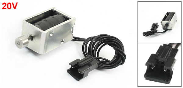 Power Cable Type 2 Pin Connector Plunger Knob Diameter 6mm/0.24", 6.5mm/0.26" Body Size 19 x 16 x 30mm/0.75" x 0.63" x 1.2"(L*W*H) Plunger Bar Size 45 x 1.8mm/1.8" x 0.07"(L*D) Cable Length 31cm/12.2" Mounted Hole Dia 2.5mm/0.1" Material Metal, Electronic Parts Color Silver Tone, Black Weight 51g Package Content 1 x Solenoid Electromagnet - Reviews