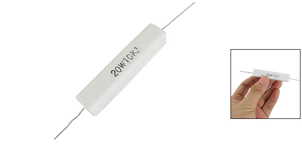 Product Name Cement Type Resistor Rated Power 20W Resistance 10K ohm Resistance Tolerance J (±5% ) Size 61mm x 12mm x 12mm / 2.4" x 0.47" x 0.47"(L*W*T) Lead Length 25mm, 33mm Material Cement, Ceramic, Metal Color White Weight 20g Package Content 1 x Cement Type Resistor - Reviews