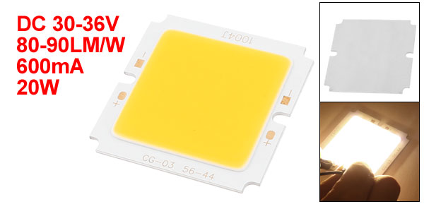 Product Name COB LED Lamp Bead Rated Voltage DC30-36V Luminous Flux 80-90LM/W Color Temperature 2800-3000K Power 20W Current 600mA Light Color Warm White Material Aluminum Color Silver Tone, Orange Size 56 x 56mm/ 2.2" x 2.2" (L*W) Luminous Surface 44 x 44mm/ 1.7" x 1.7"(L*W) Weight 17g Package Content 10 x COB LED Lamp Bead - Reviews
